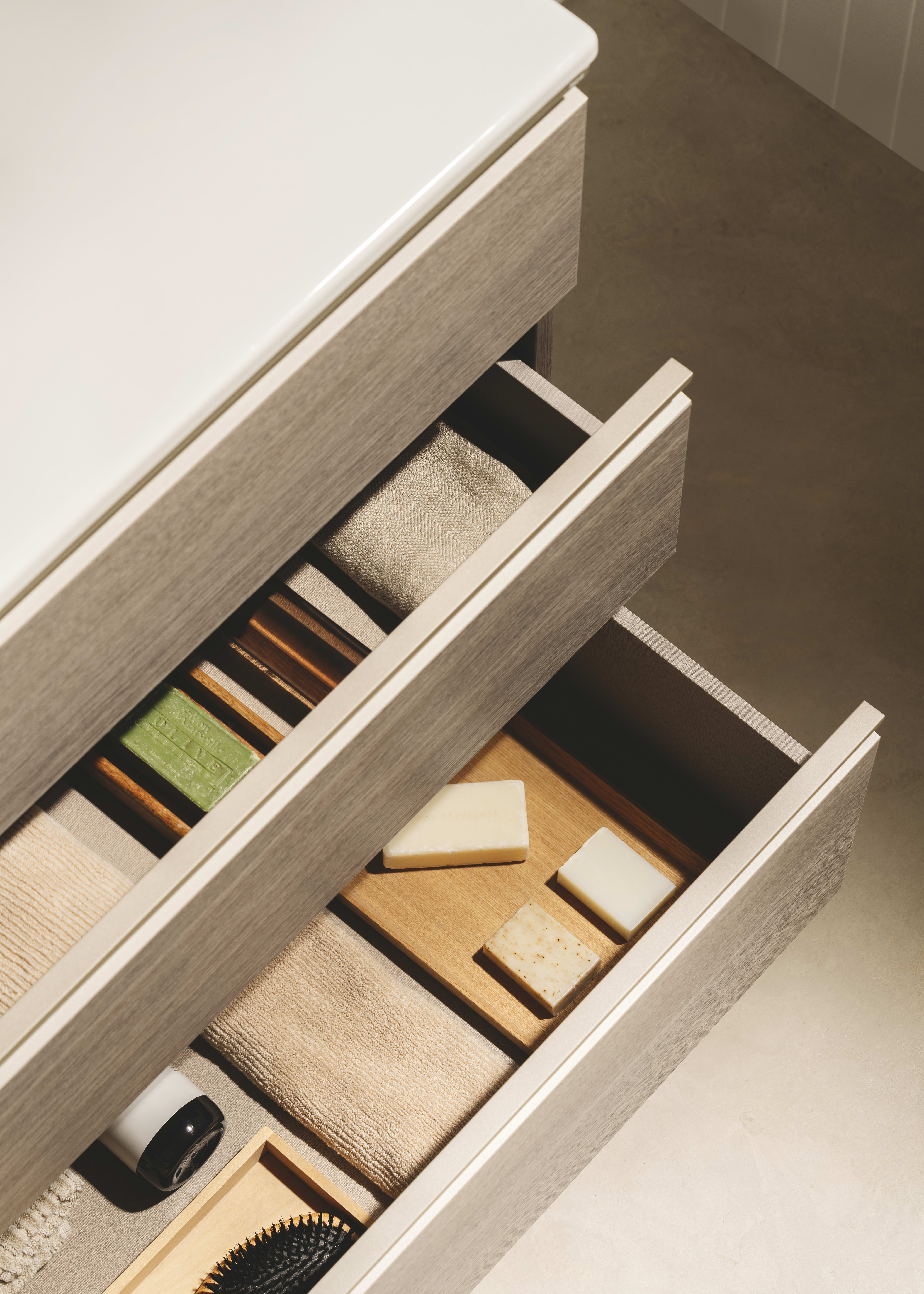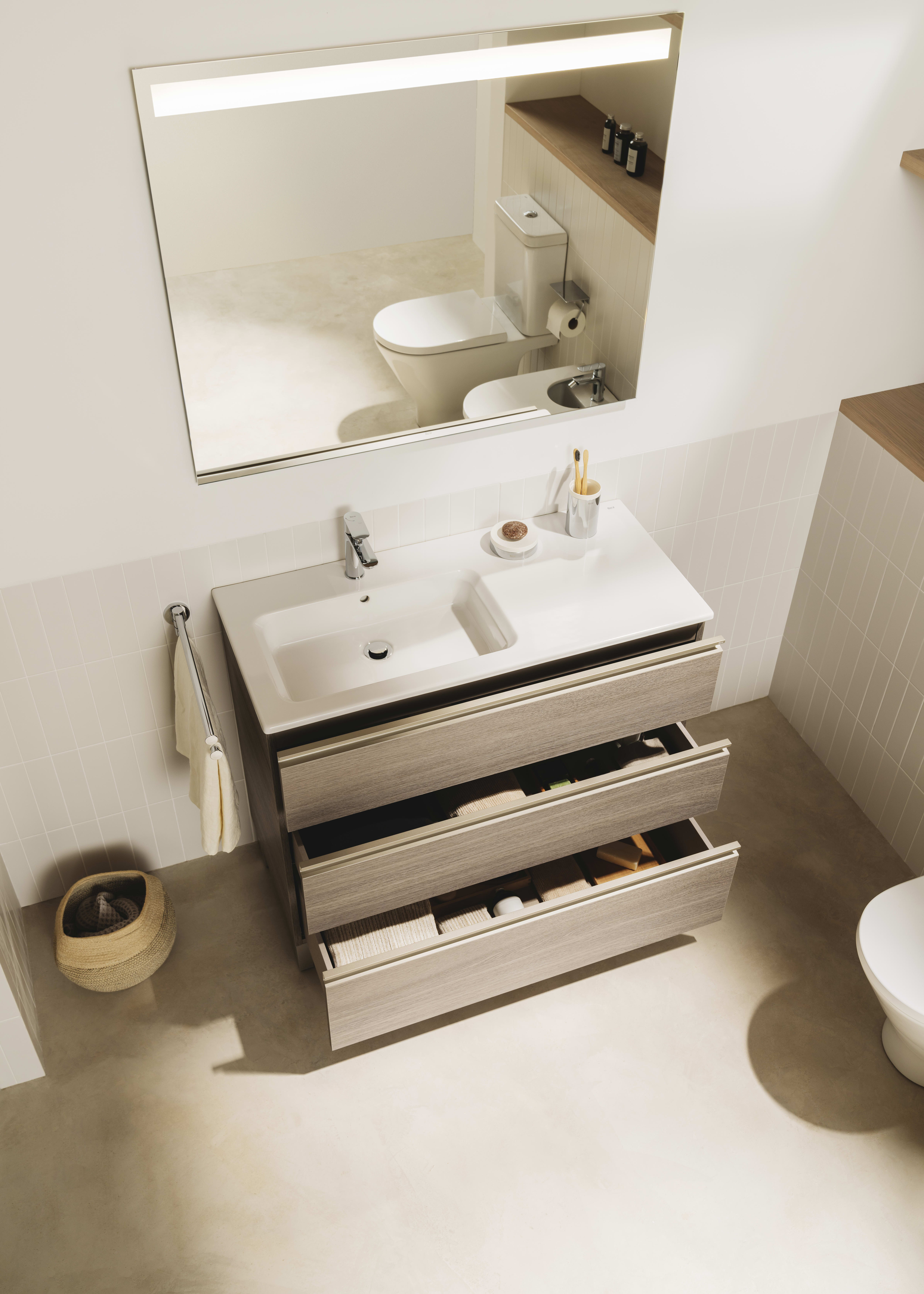 Esta colección aporta un estilo compacto y funcional. Su amplia gama permite optimizar cualquier espacio de baño. Sus líneas modernas y elegantes la convierten en una decisión inteligente.