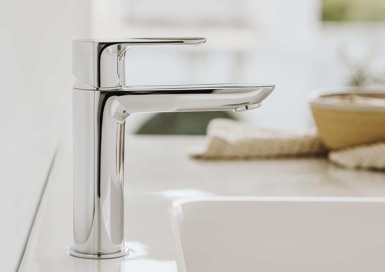 Un diseño esbelto, formado por un cuerpo cilíndrico estilizado de tan solo 38 mm y una manecilla plana rectangular, en perfecta armonía con la forma del caño. En Cala, todos los elementos se combinan visualmente para crear la mejor proporción y estilo.