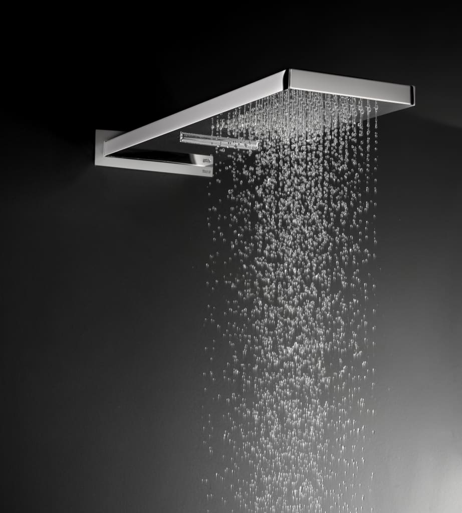 Rociador circular de techo empotrable de acero inoxidable cromado. Función Rain (lluvia).
